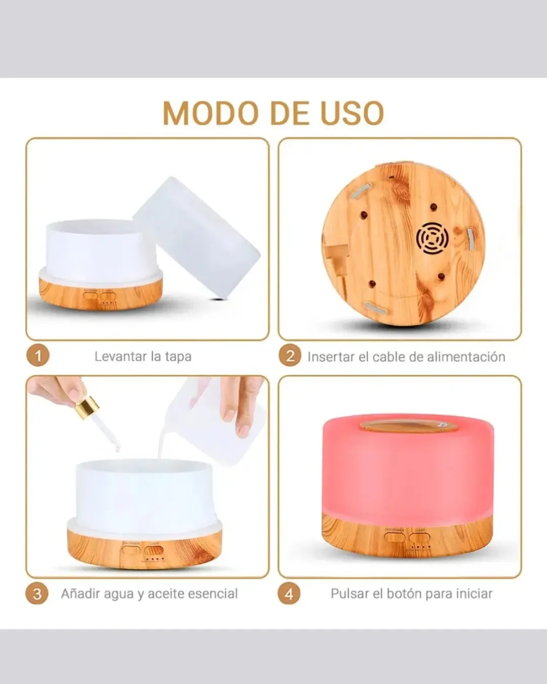 Humidificador 220V Blanco con Detalles en Madera y Control Remoto