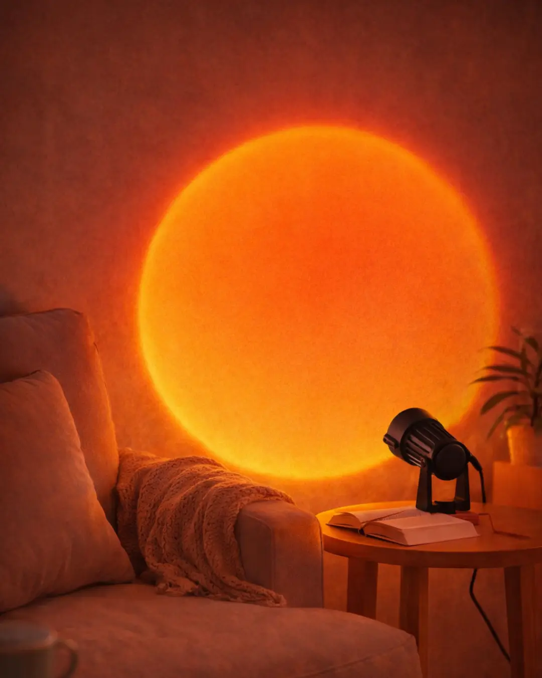 Descripción: Esta lámpara de proyección roja tipo puesta de sol brinda una iluminación intensa y cálida, ideal para crear ambientes llamativos, románticos o artísticos.