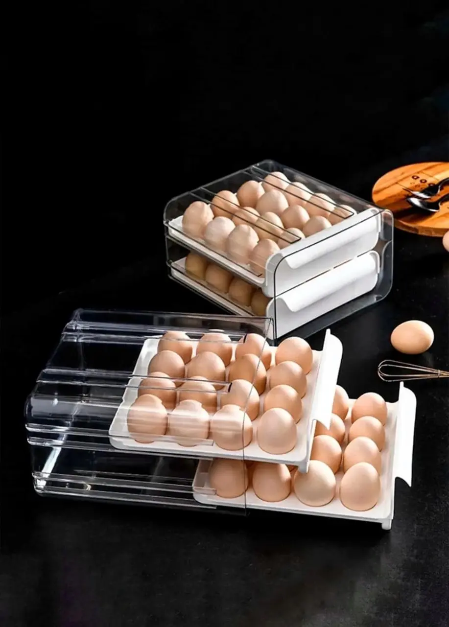 Organizá tu heladera de forma práctica con esta caja de almacenamiento de 2 niveles para huevos, diseñada para mantenerlos ordenados, protegidos y siempre a mano. Su formato apilable optimiza el espacio y permite guardar hasta 32 unidades de manera segura.